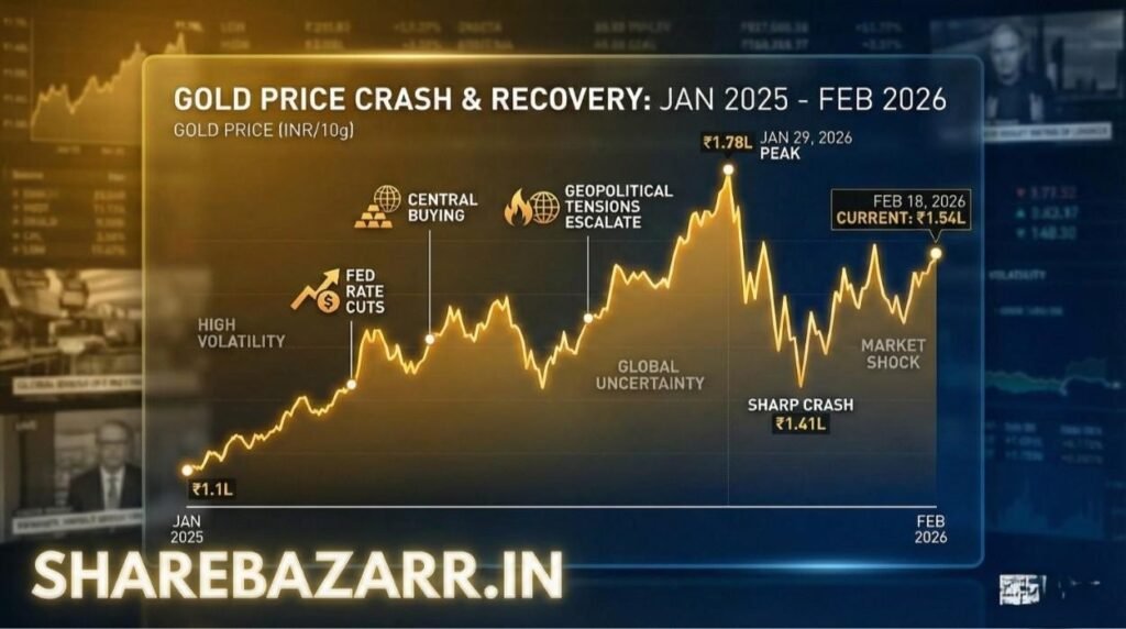 Gold just delivered one of the most violent round-trips in precious metals history — surging 50% through 2025 to peak at ₹1,78,850 per 10 grams on January 29, 2026, then crashing 12% to ₹1,41,900 within ten days, before recovering to today’s ₹1,54,190. That whipsaw left retail investors stunned and institutional desks scrambling to recalibrate models. However, the fundamental drivers that powered gold’s 2025 rally — central bank buying at record pace, Federal Reserve rate cuts, persistent geopolitical risk, and Rupee depreciation — have not disappeared. So should you actually buy gold at ₹1.54 lakh per 10 grams in February 2026 — or is this recovery just a pause before another leg lower?